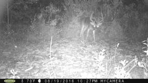 Click image to enlarge. This is the one buck that would make my season. He’s a mature 10 pt from last year. I had a shot opportunity on him last year but he had broken off one main beam about 8 inches up ( see 2015 Trail Cam gallery ). I had him in right before good shooting light a few days after this photo was taken. Didn’t have quite enough camera light. I let him walk off. Hope I don’t regret it!