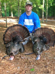 Will and I set up on a bird and after about 45 minutes I manged to get him to come in. Will killed him and as we were preparing to leave another bird gobbled. We set up again quickly and the second bird came in soon after. Will got his double.