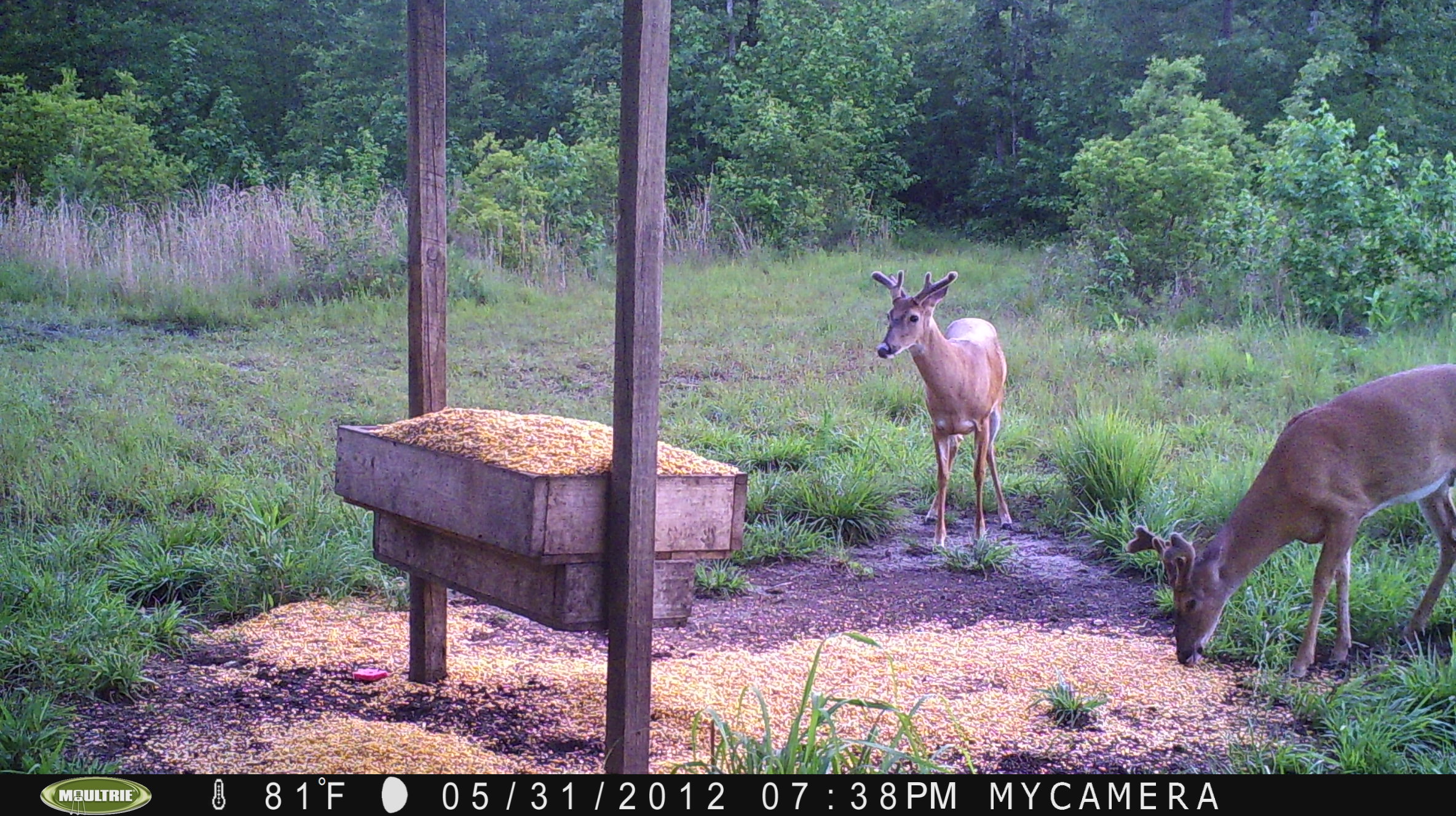 Click image to further enlarge. Antler growth at a faster pace now. Both of these bucks will be outside their ears and showing good potential. Time will tell just how much.