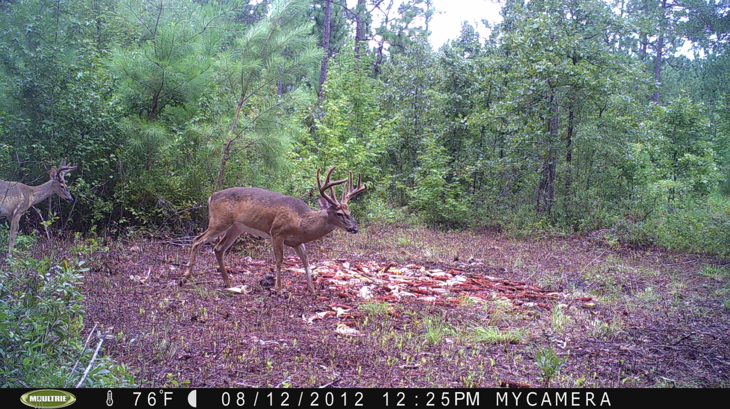 Click image to further enlarge. This buck is a definite hit lister, and look at the time he showed up- midday! Wow!