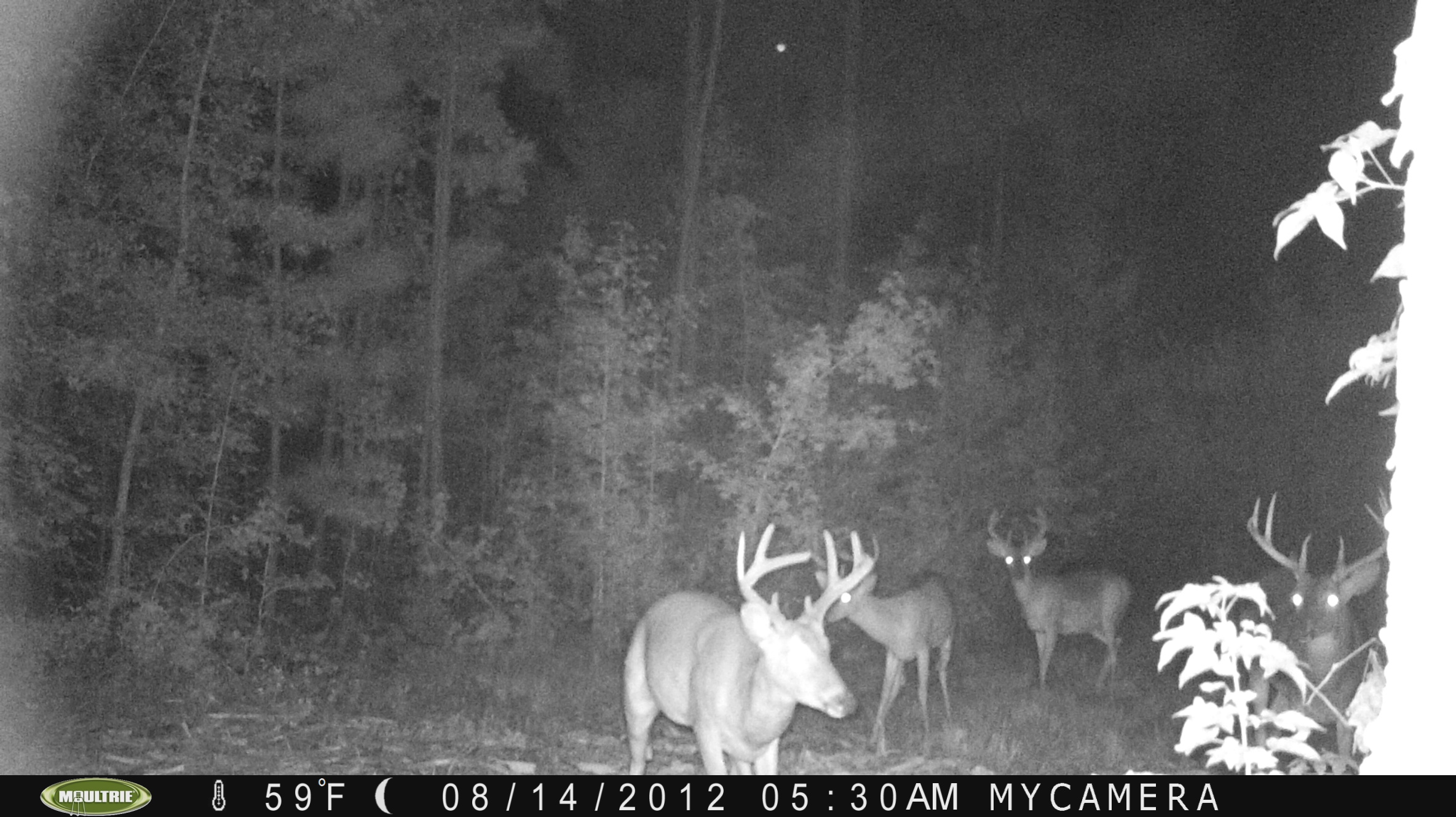 Click image to further enlarge. Here’s a group of bucks on one of my stands. Notice that the 8-pt on the right is already clean.