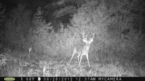 This is the same buck shown in velvet at the high pro feeder. He still looks pretty good clean.