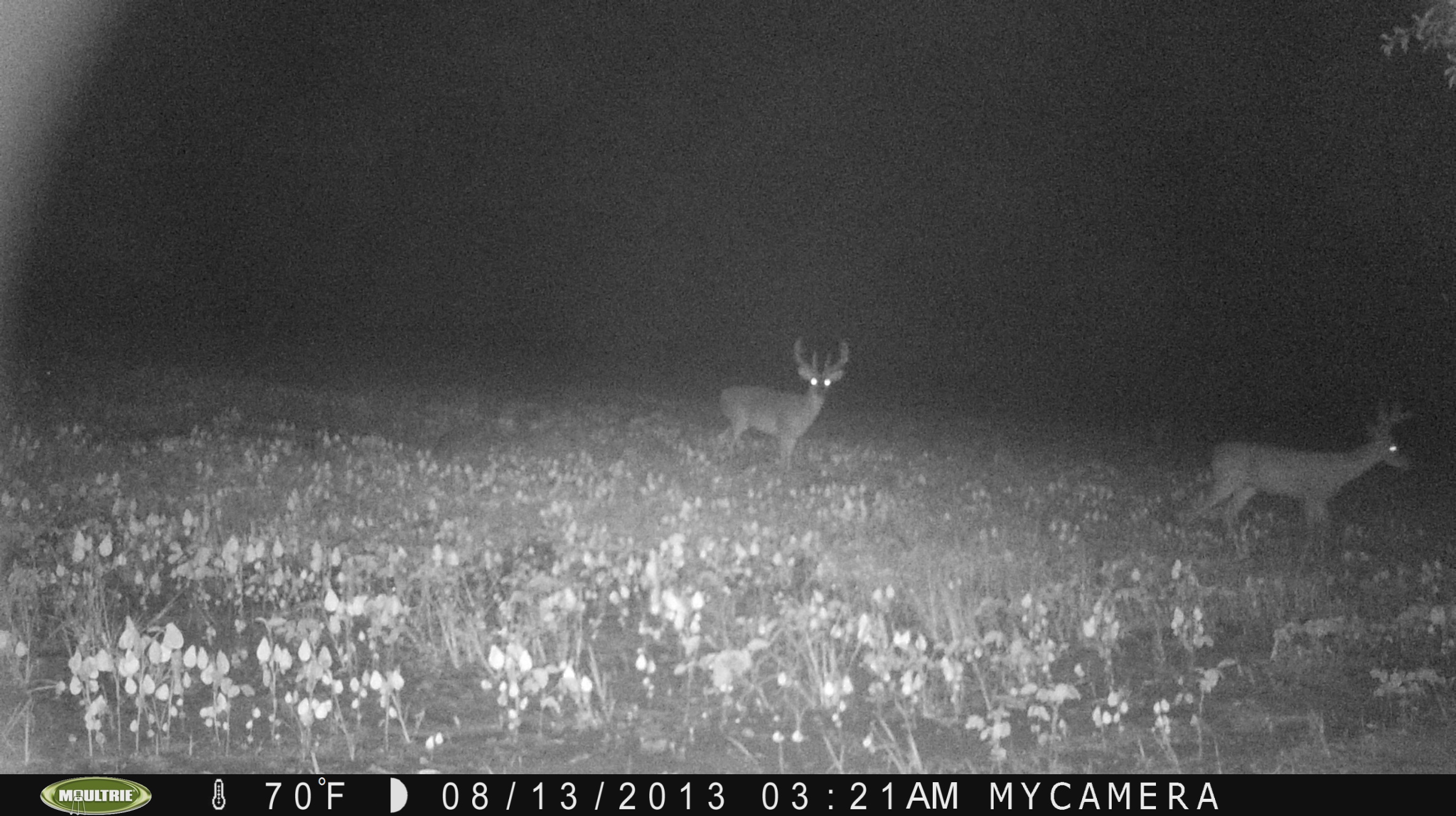 Click image to further enlarge. Today, August 13th. Two good looking bucks in the wee hours of the morning, on one of my new hunting spots for this year. This stand is on a bean field. Just need for the big boy to show up in shooting light.