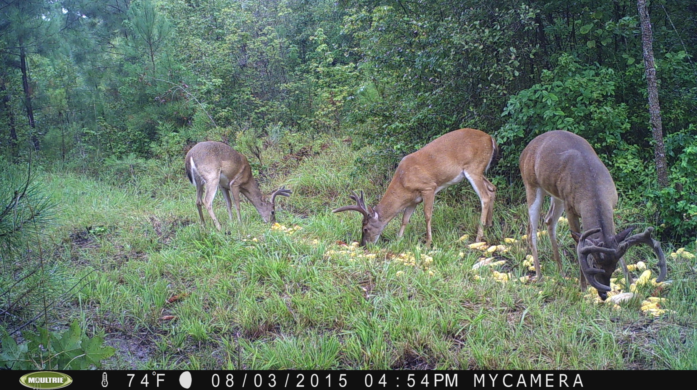 Click image to further enlarge. Another look at the great 10-pointer along with a couple of smaller bucks. Notice the time- before 5:00PM.